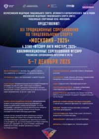 ![]() 20 - 21 декабря 2025 #ФТСАРР ДОС Москвы, ЧМО, ПМО, РС С "Рейтинги Московской федерации танцевального спорта ". Организатор: МФТС. Комментарии (0)